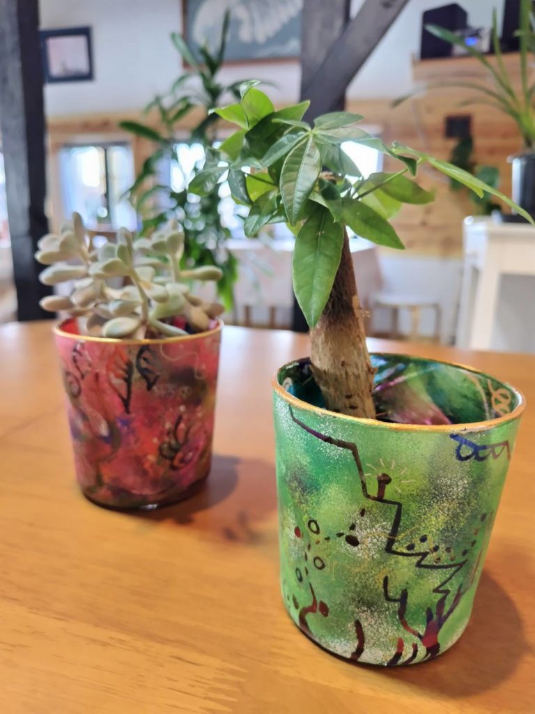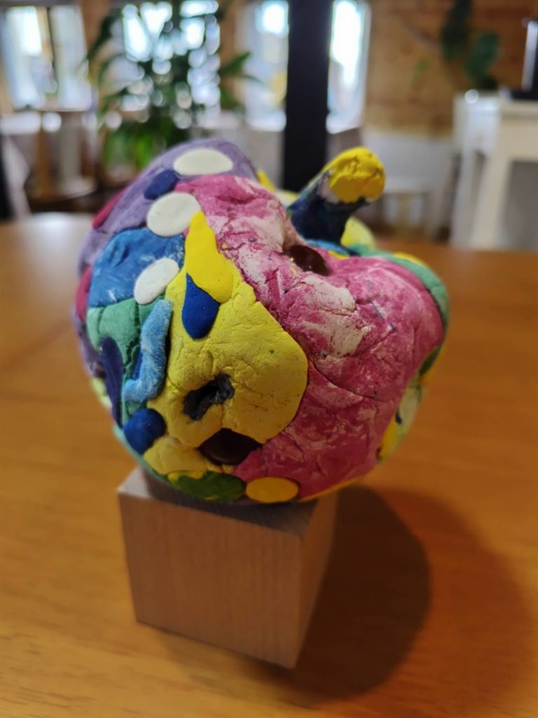 く・るくすには造形・絵・音楽などたくさんの作品達が集まります。ウッディな空間に腰掛けると、どこかしら懐かしい気持ちになるとよく言われます。