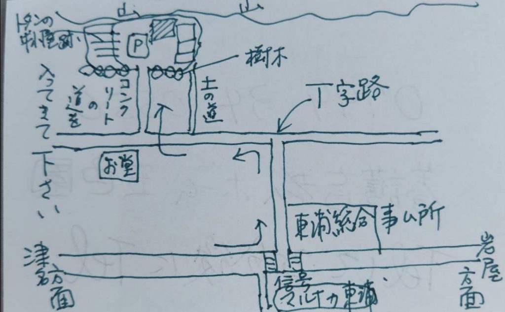 国道28号線沿いにある「マルナカ東浦店」の向かい「東浦総合事務所」前の信号を、山手に進んでいただきますとT字路の突き当たりに出ますので、そこを左折してください。
